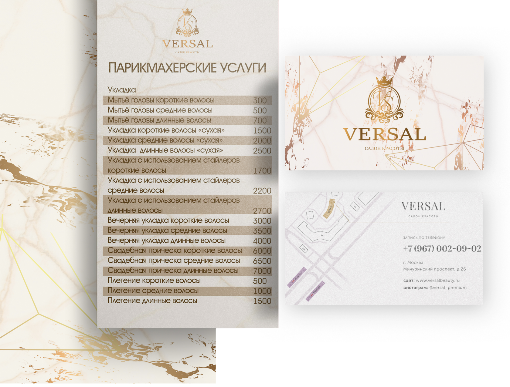При оформлении фирменного стиля салона премиум-класса Versal мы исходили из того, какие именно девушки сюда приходят за красотой и что они хотят видеть вокруг себя в этот момент.